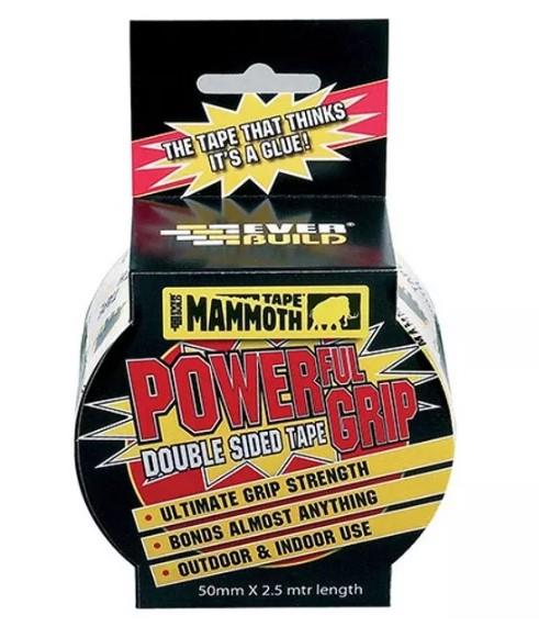 50MMx2.5M MAMMOTH POWERGRIP DOUBLE SIDED TRANSPARENT ADHESIVE TAPE